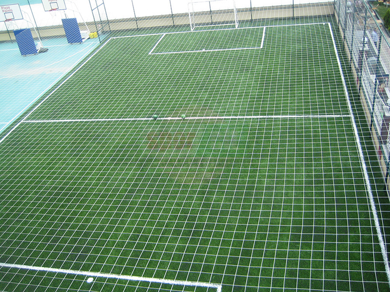 Sahanın üzerine topun dışarıya kaçmaması için 15x15cm göz aralığında 66 numara ithal ipten mamul üst kapama ağı,tel çit direklerine bağlanarak montaj yapılır.